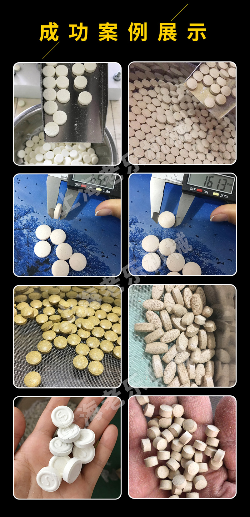 與其他機(jī)器的區(qū)別優(yōu)勢(shì):可壓25MM外直徑的片劑,壓力大,才能壓大片,25MM以內(nèi)的圓形、異形、不規(guī)則形狀都可以壓,自帶圓形模具,可以自己選擇尺寸大小,師傅安裝調(diào)試好后發(fā)貨,其他形狀模具可定做,比如中藥材成型片、奶片、鈣片、鹽片、泡騰片等