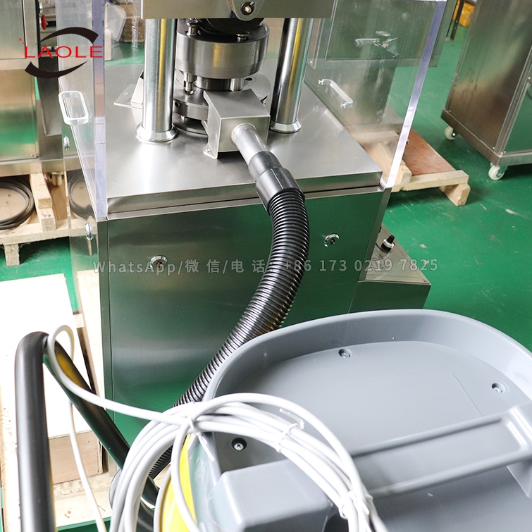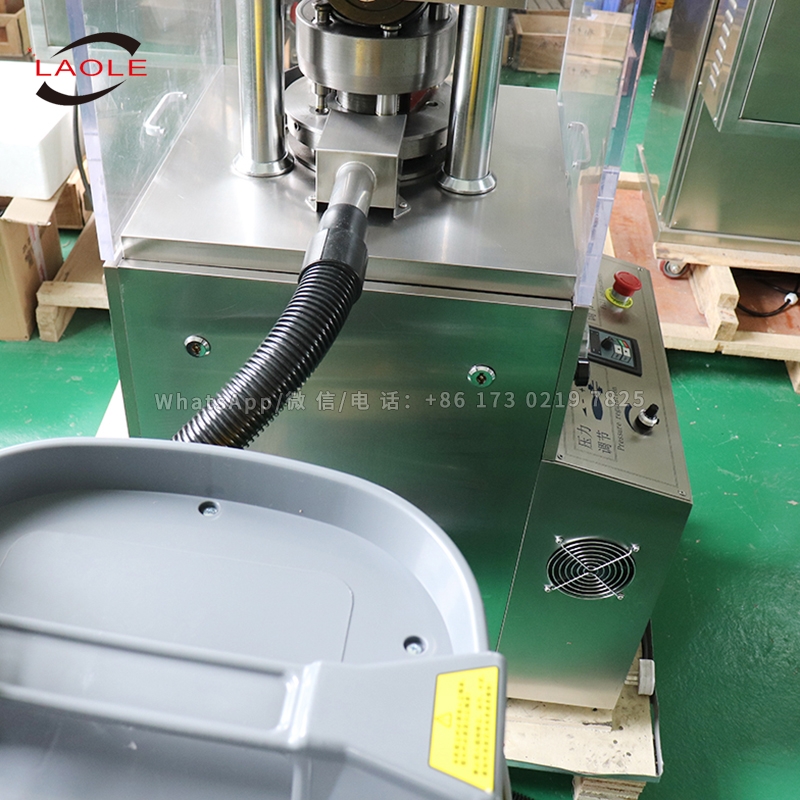 本機是一種單壓式自動旋轉,連續(xù)壓片的機器,將顆料狀原料壓制成各種片劑。它主要用于制藥業(yè)的片劑生產,同時適用于化工、食品、電子等工業(yè)部門。外圍罩殼為全封閉形式,材料采用不銹鋼,內部臺面用不銹鋼材料,轉臺表面經過特殊處理,能保持表面光澤與防止交叉污染,符合GMP要求。裝有透明玻璃的門窗,能清楚觀察壓片的狀態(tài),并且能全部打開,易于內部清理和保養(yǎng)。所有控制器和操作件均布局合理。采用變頻調速裝置進行電氣調速,操作方便,轉動平穩(wěn),安全準確。所有的傳動裝置均布置在機器內部,保持機件清潔。配有過載保護裝置,當壓力過載時,能自動停機。