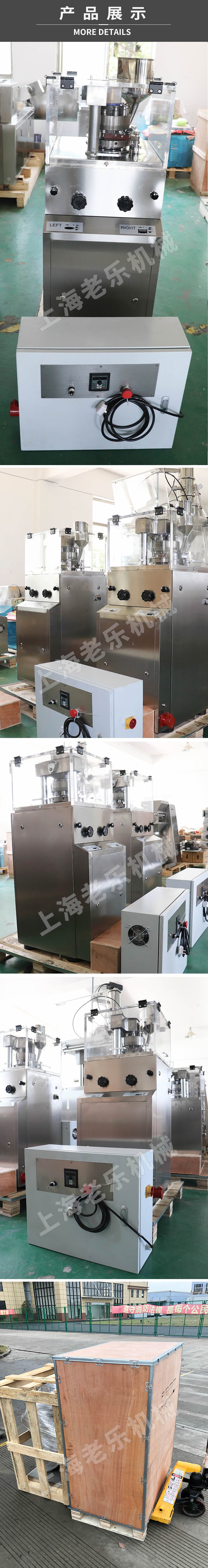本機是一種單壓式自動旋轉,連續(xù)壓片的機器,將顆料狀原料壓制成各種片劑。它主要用于制藥業(yè)的片劑生產(chǎn),同時適用于化工、食品、電子等工業(yè)部門。外圍罩殼為全封閉形式,材料采用不銹鋼,內部臺面用不銹鋼材料,轉臺表面經(jīng)過特殊處理,能保持表面光澤與防止交叉污染。裝有透明玻璃的門窗,能清楚觀察壓片的狀態(tài),并且能全部打開,易于內部清理和保養(yǎng)。所有控制器和操作件均布局合理。采用變頻調速裝置進行電氣調速,操作方便,轉動平穩(wěn),安全準確。所有的傳動裝置均布置在機器內部,保持機件清潔。控制箱和主體分離,加長延長線,操作和主體分離更加安全,電機為防爆電機,區(qū)別于一般的電機。