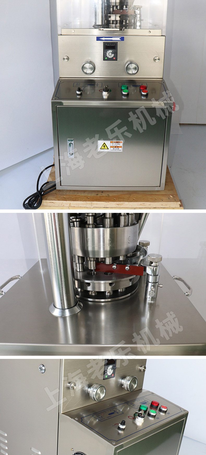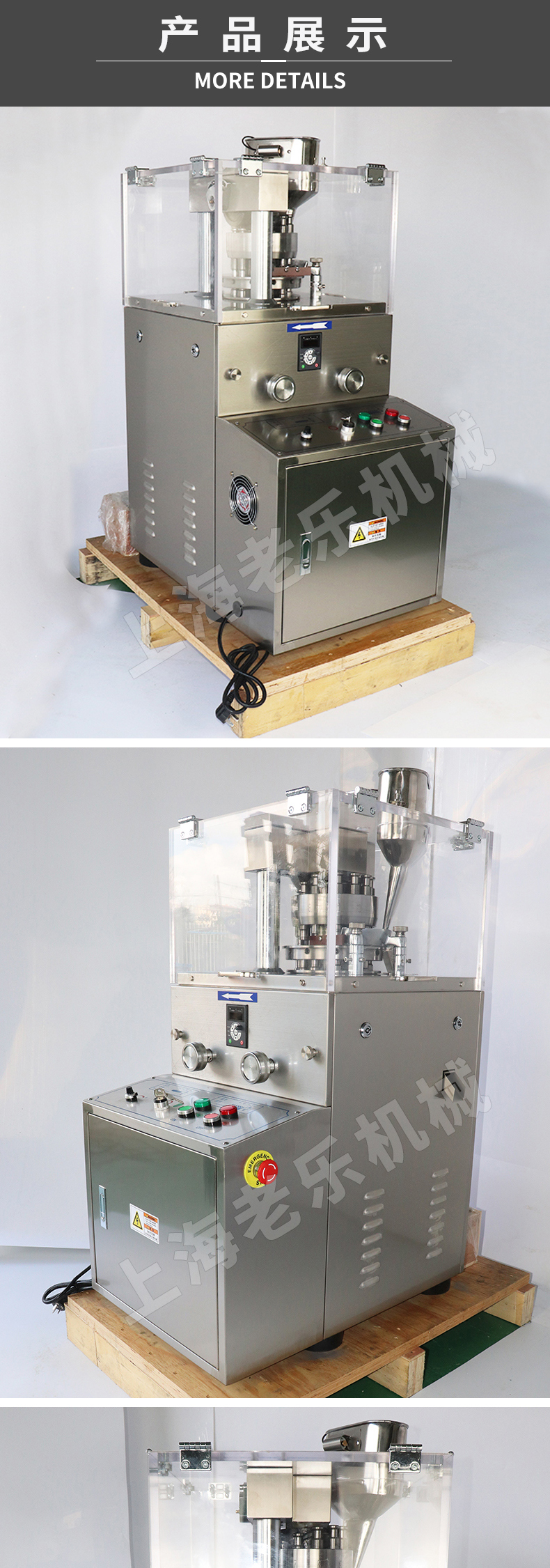 本機(jī)是一種單壓式自動(dòng)旋轉(zhuǎn),連續(xù)壓片的機(jī)器,將顆料狀原料壓制成各種片劑。它主要用于制藥業(yè)的片劑生產(chǎn),同時(shí)適用于化工、食品、電子等工業(yè)部門。外圍罩殼為全封閉形式,材料采用不銹鋼,內(nèi)部臺(tái)面用不銹鋼材料,轉(zhuǎn)臺(tái)表面經(jīng)過特殊處理,能保持表面光澤與防止交叉污染,符合GMP要求。裝有透明玻璃的門窗,能清楚觀察壓片的狀態(tài),并且能全部打開,易于內(nèi)部清理和保養(yǎng)。所有控制器和操作件均布局合理。采用變頻調(diào)速裝置進(jìn)行電氣調(diào)速,操作方便,轉(zhuǎn)動(dòng)平穩(wěn),安全準(zhǔn)確。所有的傳動(dòng)裝置均布置在機(jī)器內(nèi)部,保持機(jī)件清潔。