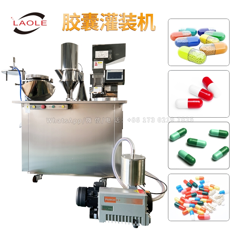本機由幾部分組成:送囊調(diào)頭分離機構(gòu)、藥料充填機構(gòu)、鎖緊機構(gòu)、變頻調(diào)速機構(gòu)、氣動控制和電器控制系統(tǒng)、保護裝置等部件以及真空泵和氣泵附件組成。國產(chǎn)或進口機制膠囊都可適用,成品合格率達到98%以上。